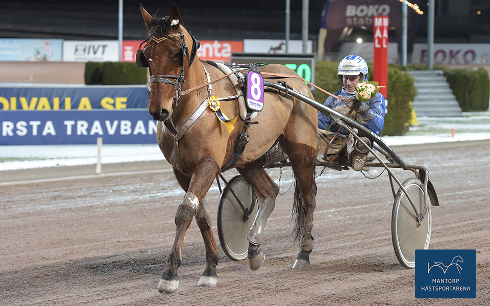 I lördagens inledande lopp deltog Elias Carlsson-tränade Make The Night. Den sexårige Make It Happen-avkomman fick en löpning i 2-3 par utvändigt med Magnus A Djuse i vagnen. På slutrundan avancerade duon fram till ledande Västerbo Amaretto-O J Östre. På upploppet kopplades ett grepp på ledaren, men Mp-hästen orkade inte svara smygkörda Victory Poseidons slutspurt sista 100 m.